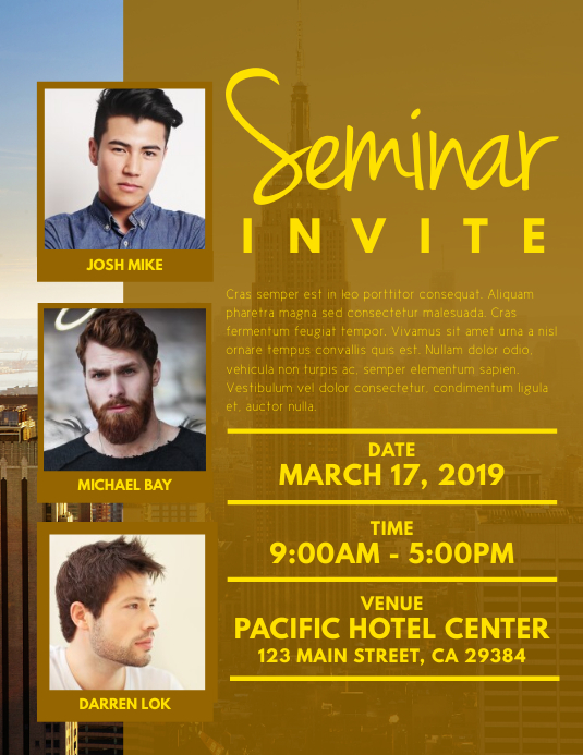 Seminar Invitation Card Template. It includes royalty-free images, designs, fonts, and layouts that are perfect for inviting individuals and guests to come, join and learn from the topics to be discussed. Invites, Cards & More in A Huge Range of Designs The main details you can add in this seminar invitation template are the venue, contact details, RSVP, the name of the company/individual who is hosting or talking in the seminar, a brief about what the seminar is, website, etc. In the event that you glance around, you'll publication that anything is marked. From a tiny container to a big office put on an act area, every single thing will undoubtedly have at any rate one mark. Naming things is valuable, simple and functional, and the applications are basically interminable. You can locate a broad assortment of names accessible available, in various shapes and sizes, styles, plans, hues, materials, template, etc.